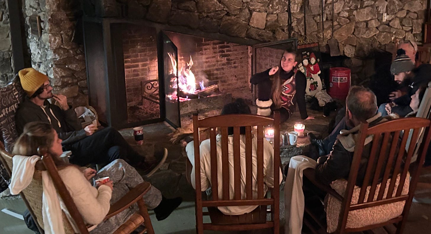 around the fireplace, with fellow souls on the path.