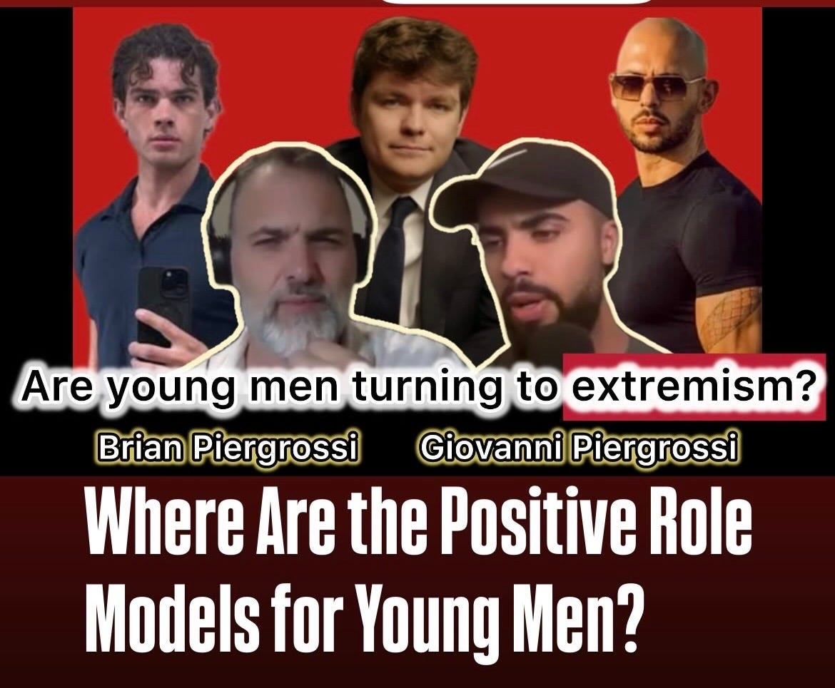 In this episode, Brian Piergrossi and his son Gio examine the growing influence of negative male role models on young men—and why so many are being pulled into the manosphere, red pill, and blackpill worldviews.
